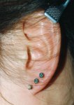 ボディーピアス(耳軟骨、へそ、唇、鼻、眉)の穴あけは痛みを伴いますから、麻酔を使います。痛みの苦手な方もご安心下さい。穴あけ後の経過は、ファーストピアスの素材や形状に大きく影響されます。ボディピアスはホールの深さが重要です。浅いと不恰好ですし、排出されやすくなります。