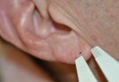 6.ピアッシングの前に耳たぶをアイスパックでよく冷やします。