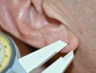 5.下側距離を測ります。反対側でも同じようにピアッシングの位置を測定し、左右対称にします。