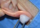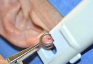 2.まず専用のリング鑷子で真ん中にマーキングペンで印をつけます。